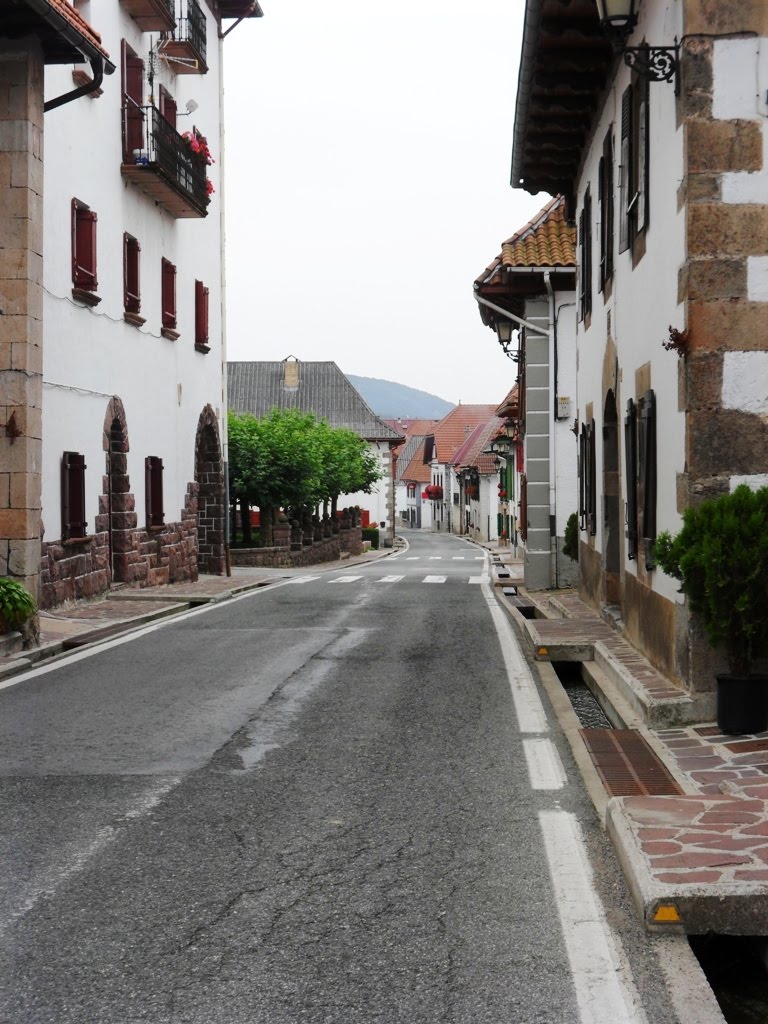At the first village of the day, Burguete, I was enthralled with the red and pink flowered boxes on the white Navarese buildings.